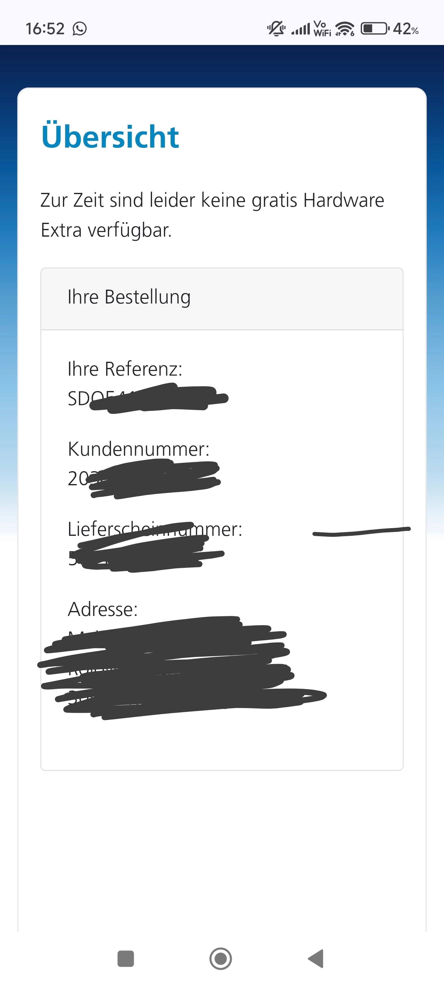 Ich bekomme aber die Meldung zur Zeit sind leider keine gratis Hardware extra verfügbar.