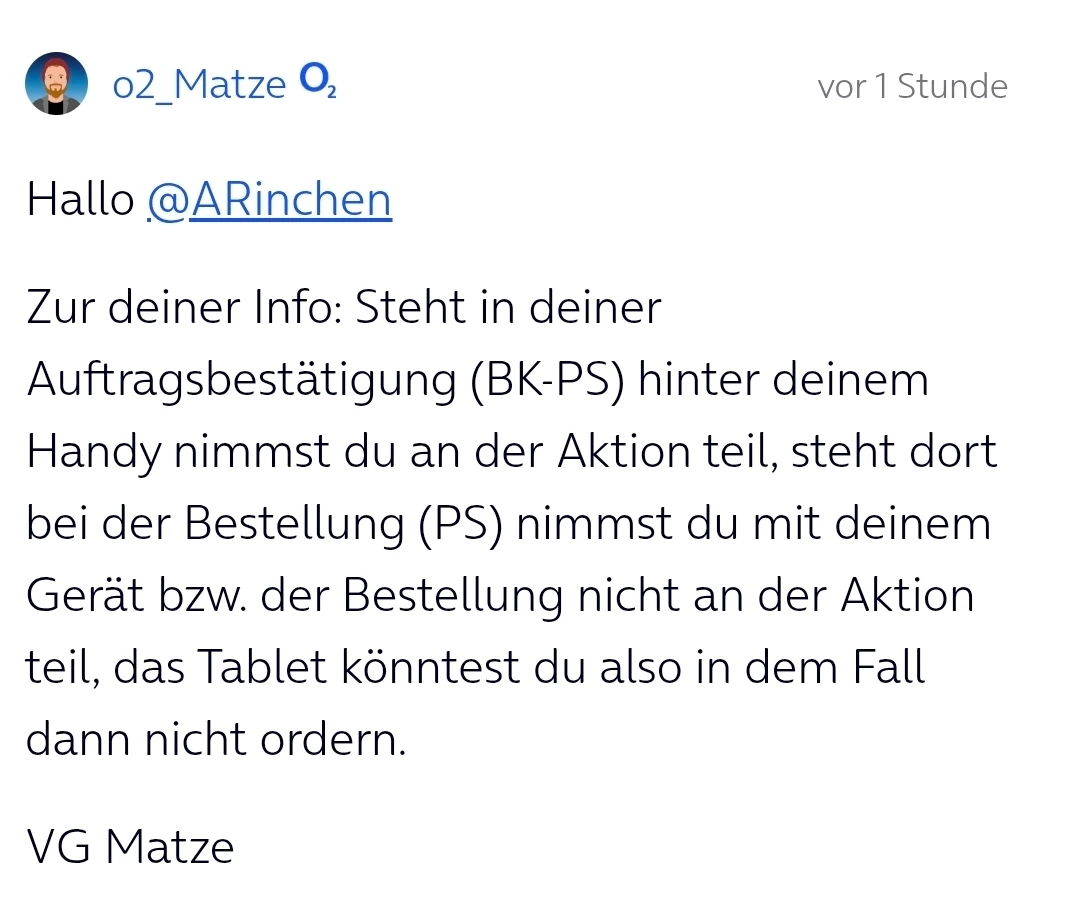 Und hattest du vor deiner Bestellung einen laufenden Vertrag? Also schon eine Rechnung gezahlt? Habe schon einiges gelesen das es dadurch sein kann wenn es nicht der Fall ist da auch Kunden mit einem forum acc dieses bestellen Konten aber laut o2 Definition kein bestandskunde ist