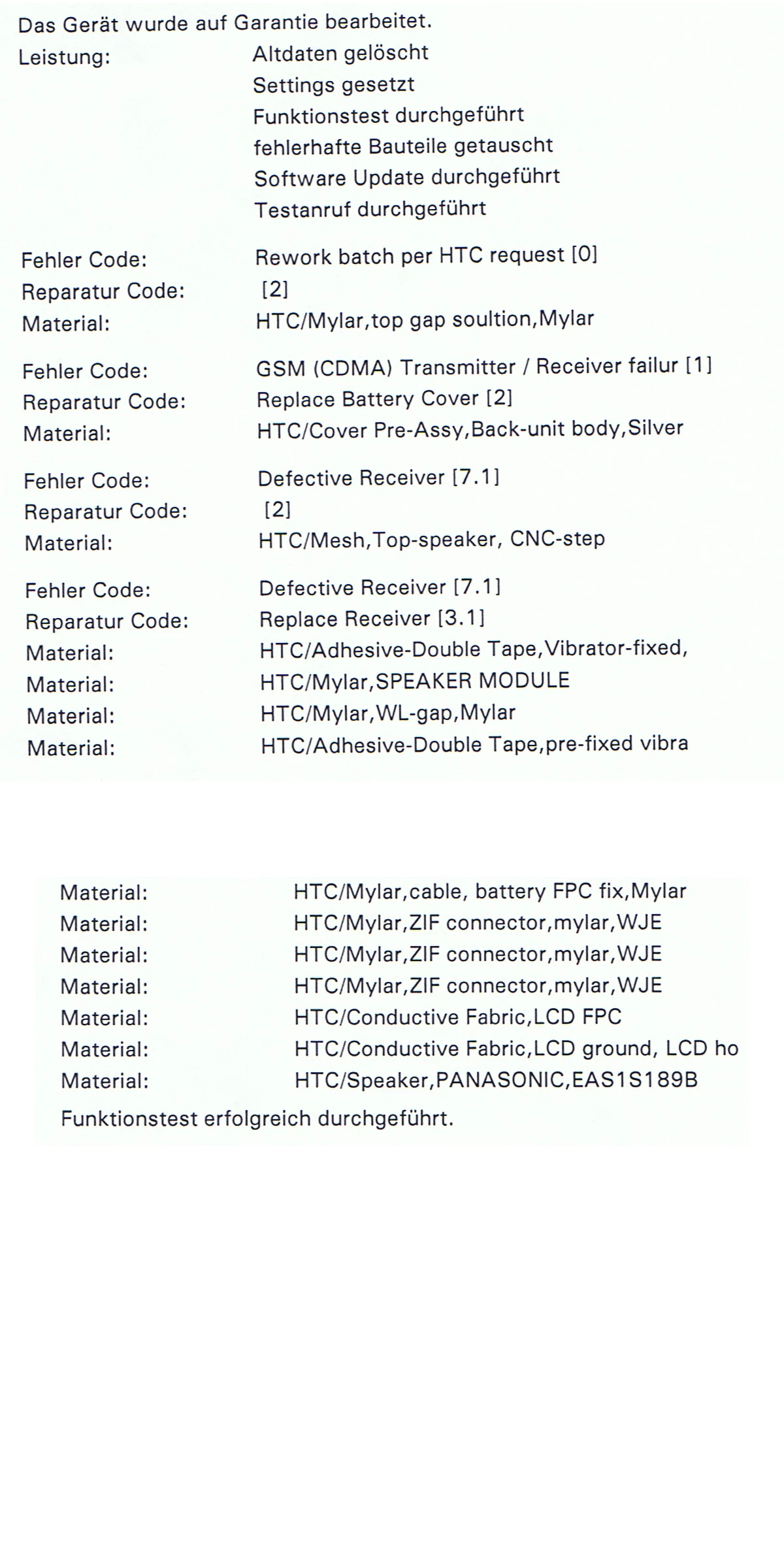 Ich habe mir gerade den Fehlerbericht angeschaut und muss schmunzeln. Ich habe fast den identischen Fehlerbericht bekommen nach der Reparatur. Es hat genau 2 Stunden gedauert, bis das Problem mit den Anrufen wieder aufgetaucht ist. Ich bin am selben Tag hin, hab das Gerät zurückgegeben und auf ein Neues HTC One bestanden, was ich auch bekommen habe. Das neue Gerät hat auch genau das selbe Problem aufgewiesen. Ich war nach dem Reparaturbericht auch erst der Meinung, jetzt müsste es gehen, aber was sehr schnell wieder enttäuscht.