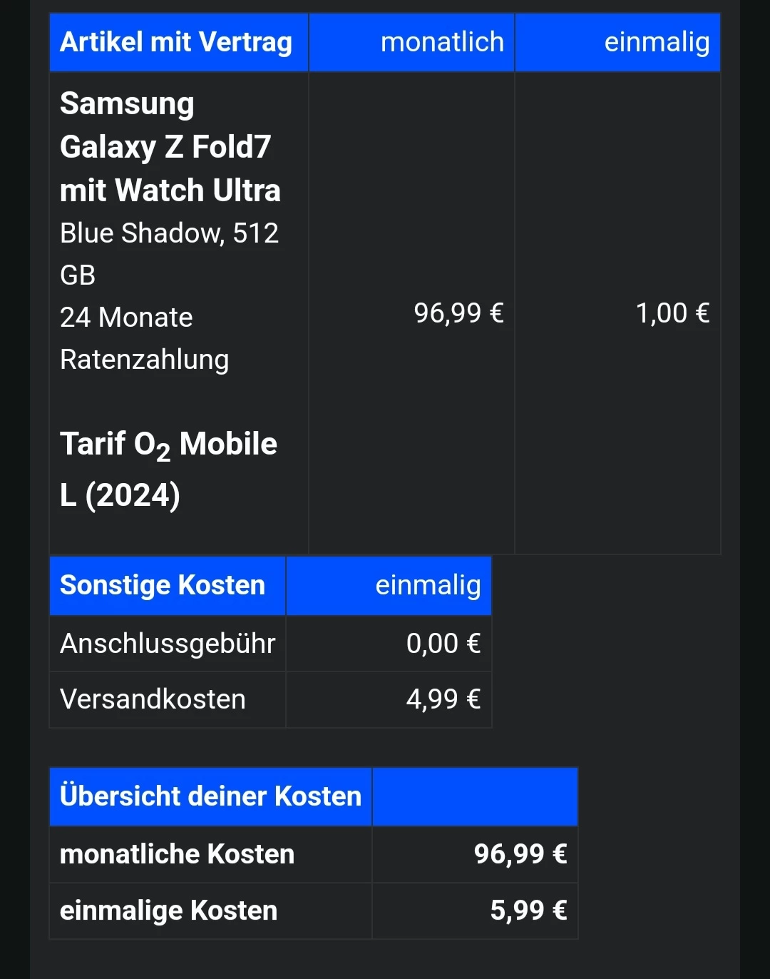 Ich habe seit dem 11.07 Das z fold 7 im Vertrag vorbestellt doch bis jetzt kam nur die sim an. Als ich den Kundenservice angerufen habe meinte man sogar das es schon an DHL abgegeben worden sei doch habe ich keine sendungsnummer erhalten.