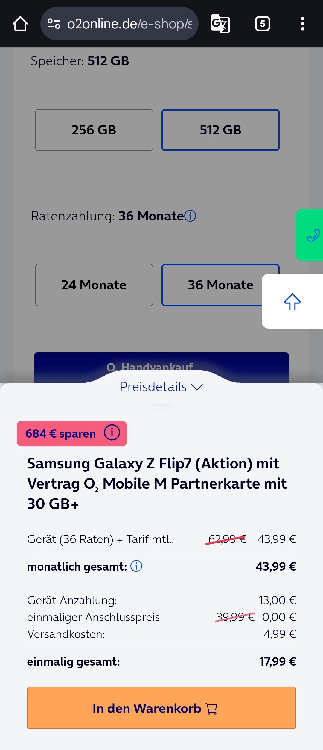 Ich wollte und will immer noch ein Samsung zflip7 mit 512 GB Speicher in schwarz. Ich hatte es mit einen L-Tarif (60GB) für 44,99€ auf 36 Monate verlängert...