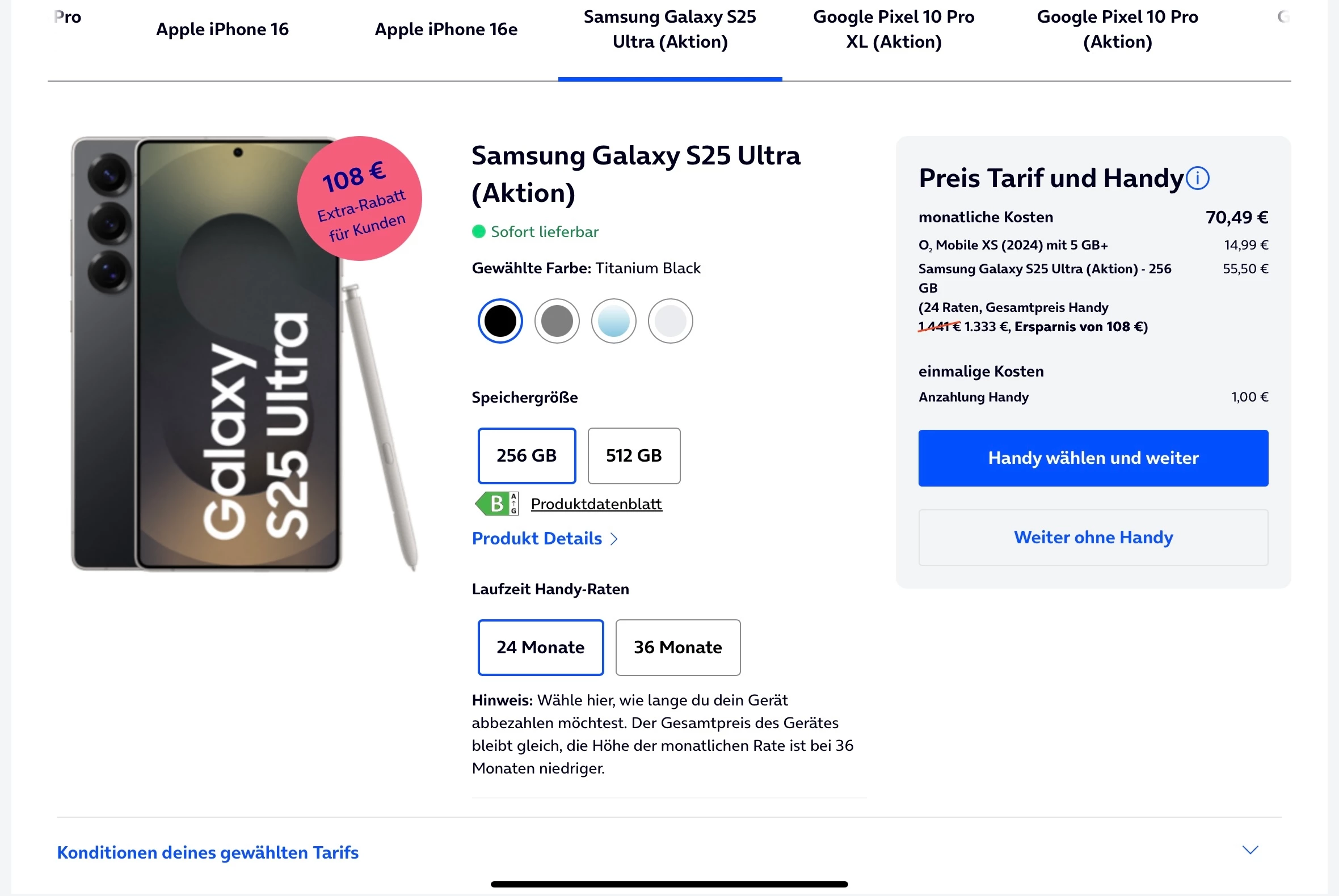 Hallo,, stehe gerade vor meiner Vertragsverlängerung. meine Frage ist was ist denn der Aktionsvorteil beim S25 Ultra der angezeigt wird?