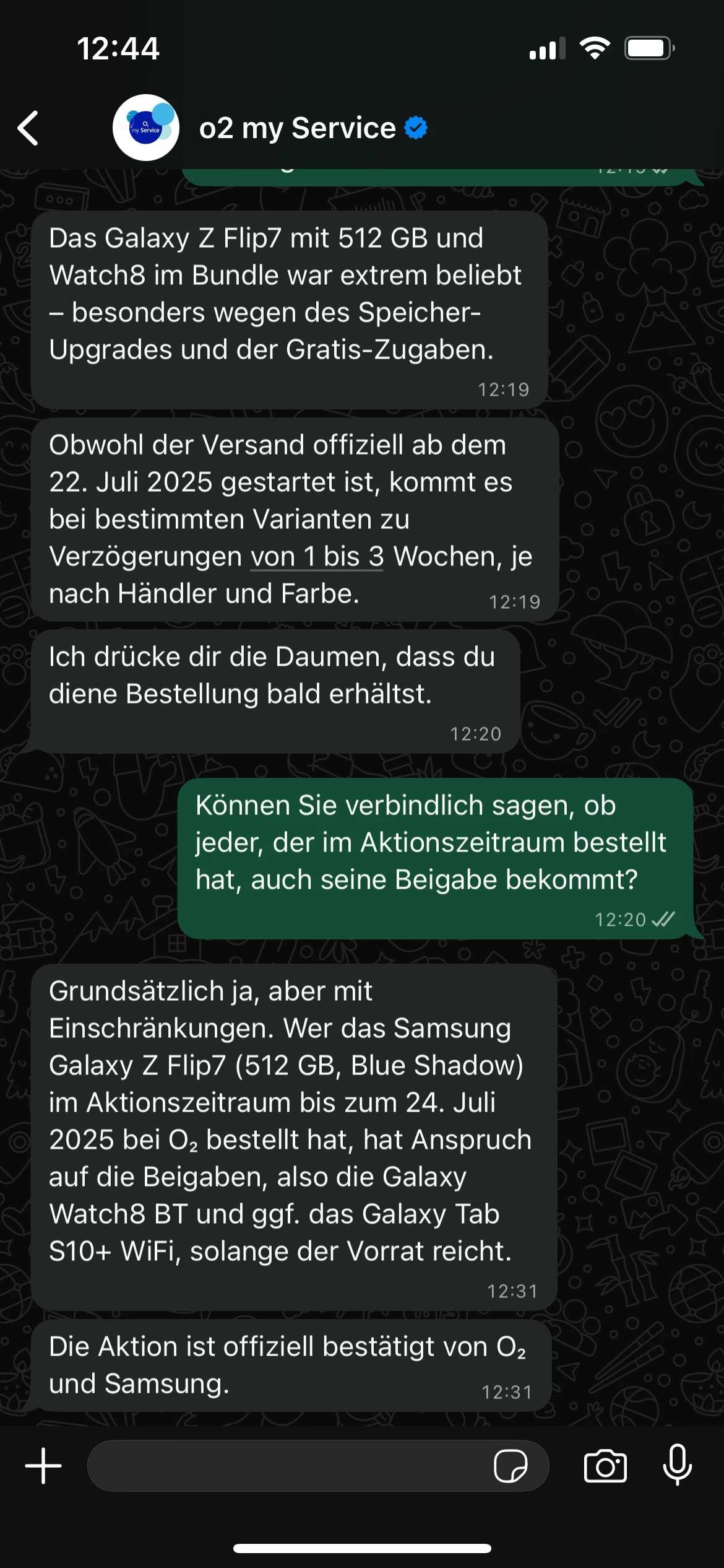 @o2_Solveig Das haben wir letzte Woche auch gehört- zumindest ich von der Hotline - vor genau fünf Tagen hätte sich mein Status für mein blaues Filp 7 von Vorbestellung auf den nächsten Step ändern sollen. Aber seit 19.07. Funkstille und immer noch “Vorbestellung”.