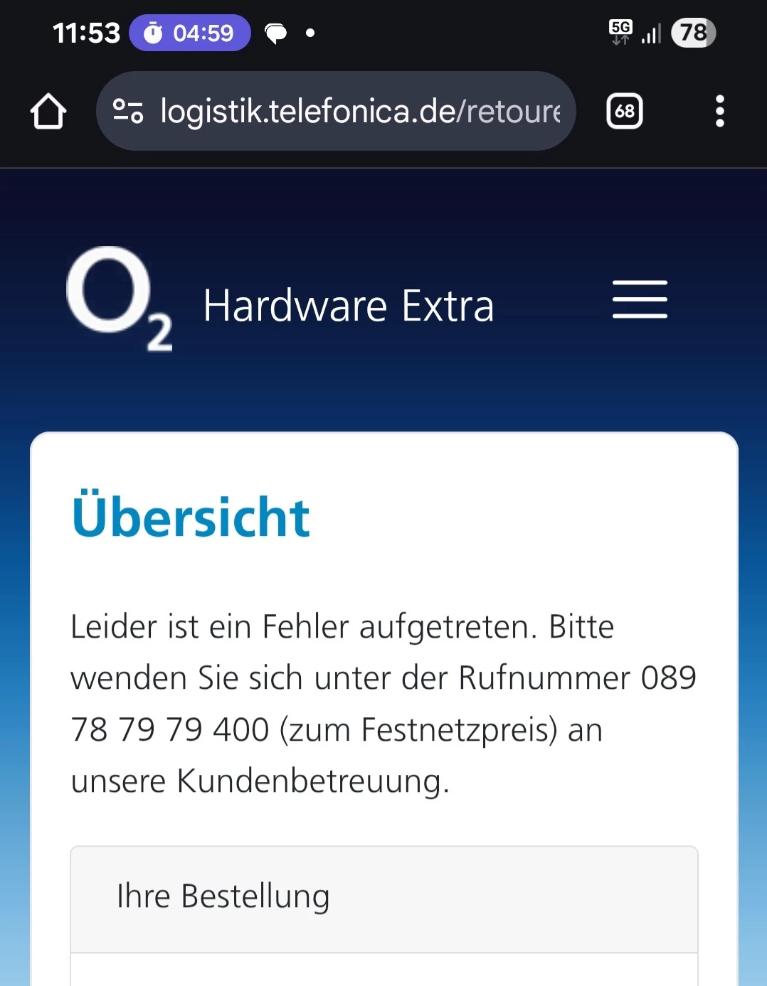 ich habe das Handy und die Watch erhalten. Seit einigen Tagen versuche ich, im Hardware Extra Portal das Tablet zu beantragen. Den Code zum Log in erhalte ich dann nur per SMS erfolgreich. Wenn ich mich einlogge, erhalte ich allerdings eine Fehlermeldung.