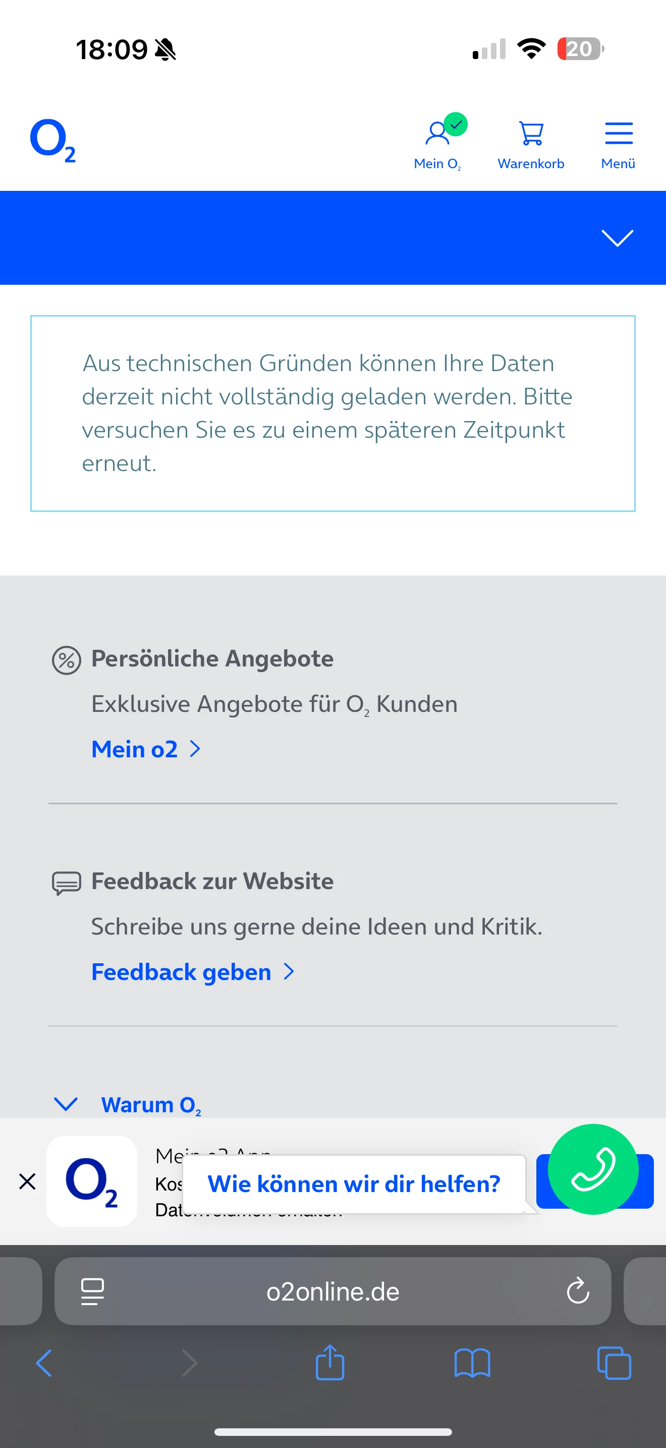 Leider ist bei mir die Anmeldung nur über die E-Mail-Adresse möglich. Wenn ich meine Rufnummer als Benutzernamen verwende, erscheint die Fehlermeldung, dass der Nutzername nicht bekannt ist. Bei Anmeldung mit der E-Mail Adresse erhalte ich die gleich Meldung wie ​@elliarv02 ("Aus technischen Gründen können Ihre Daten derzeit nicht vollständig geladen werden.”).