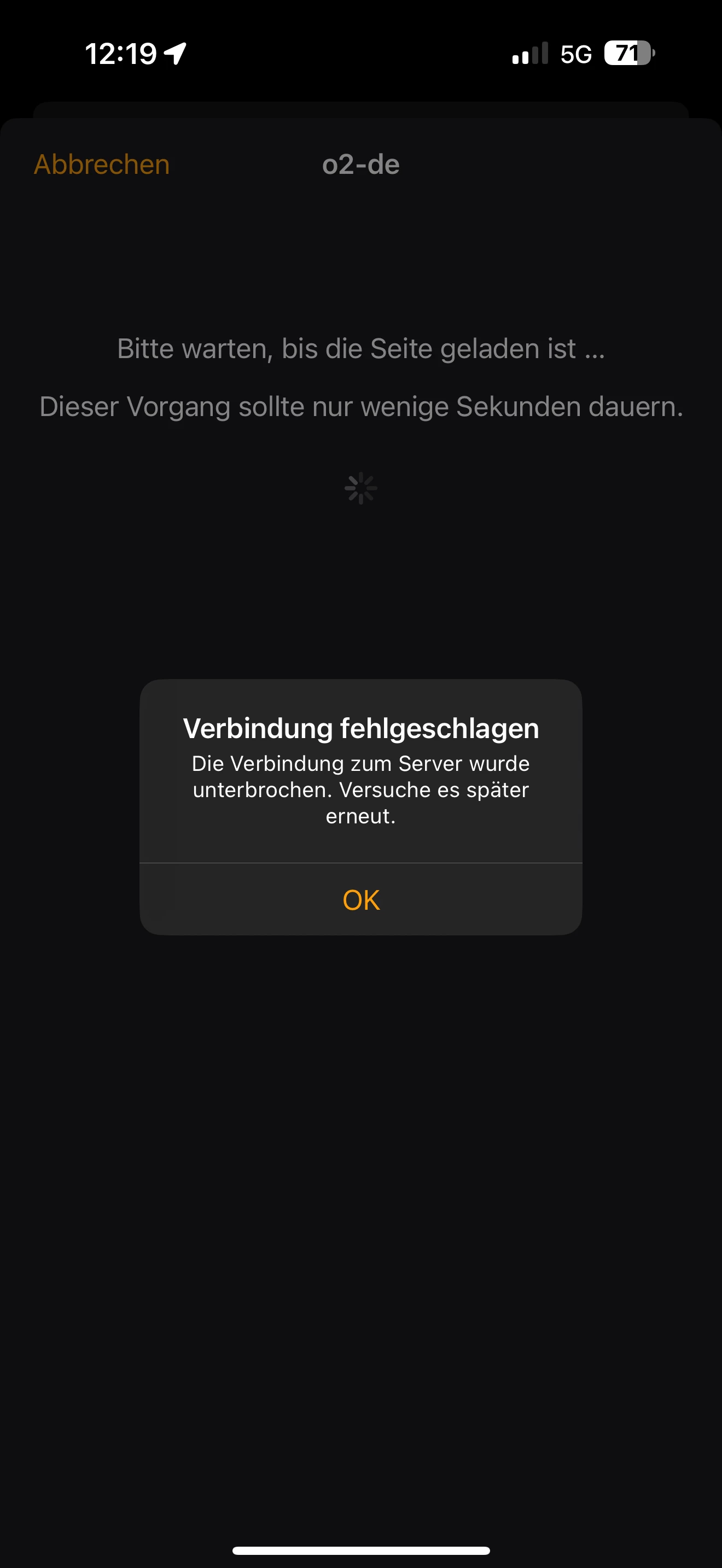 Komisch finde ich auch: Wenn ich jetzt mit meinem Handy übers Mobile Daten angemeldet bin, öffnet sich die Seite zur Anmeldung bei O2 überhaupt nicht. Ich klicke in der Watch-App auf hinzufügen, der Ladebildschirm öffnet sich kurz und schließt sich gleich wieder: