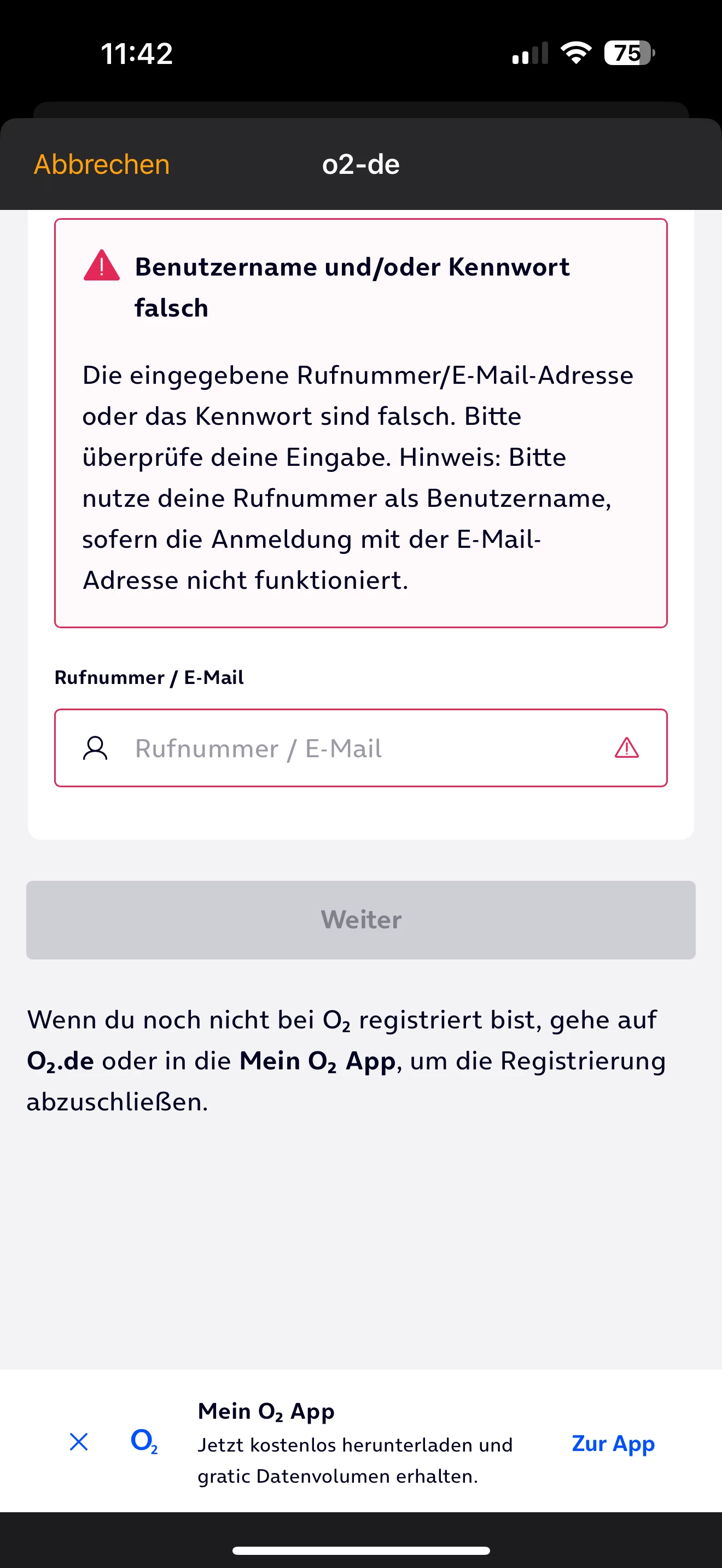 wenn ich es mit meiner Nummer versuche, kommt falscher Benutzername bzw Nunmer (so wie bei ​@Becci0401 ) oben.