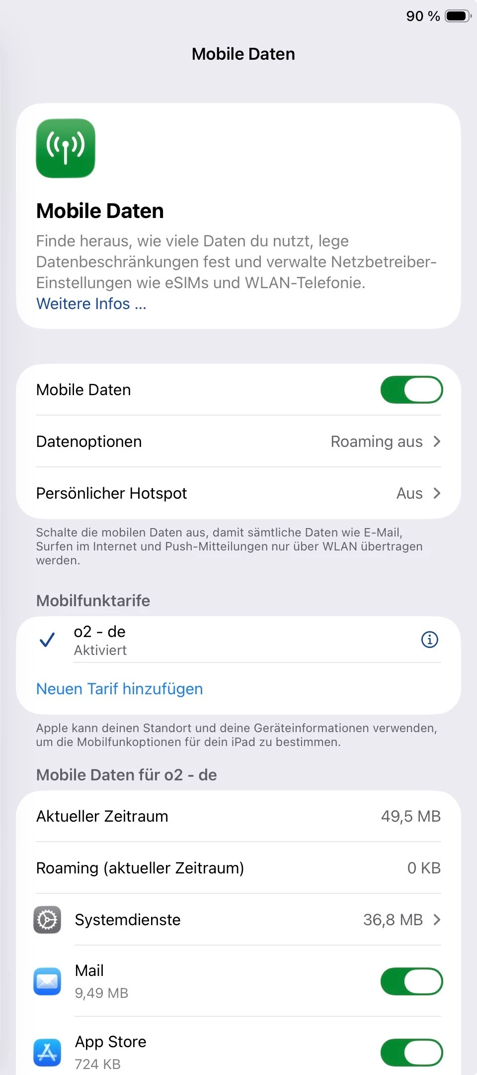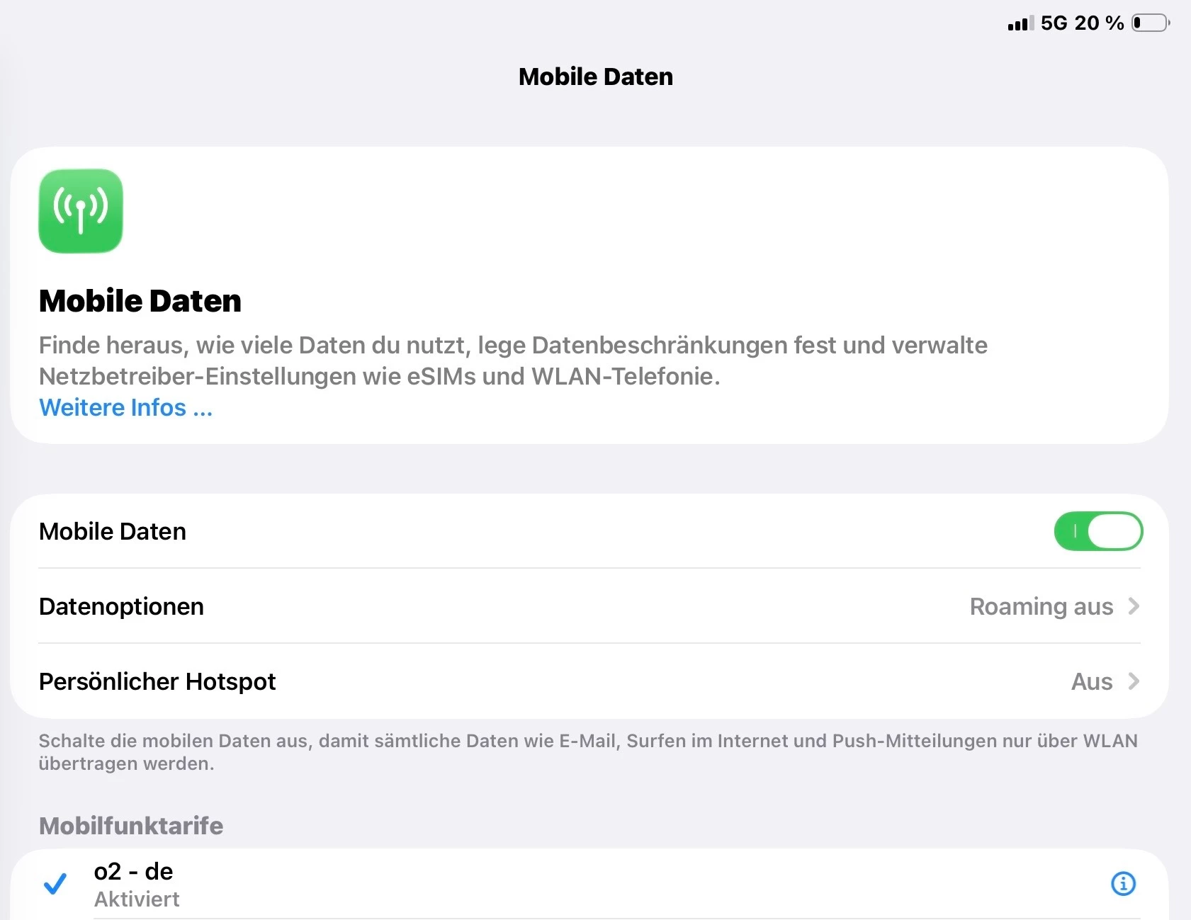 Hast du mal einen Screenshot von *Mobile Daten*?