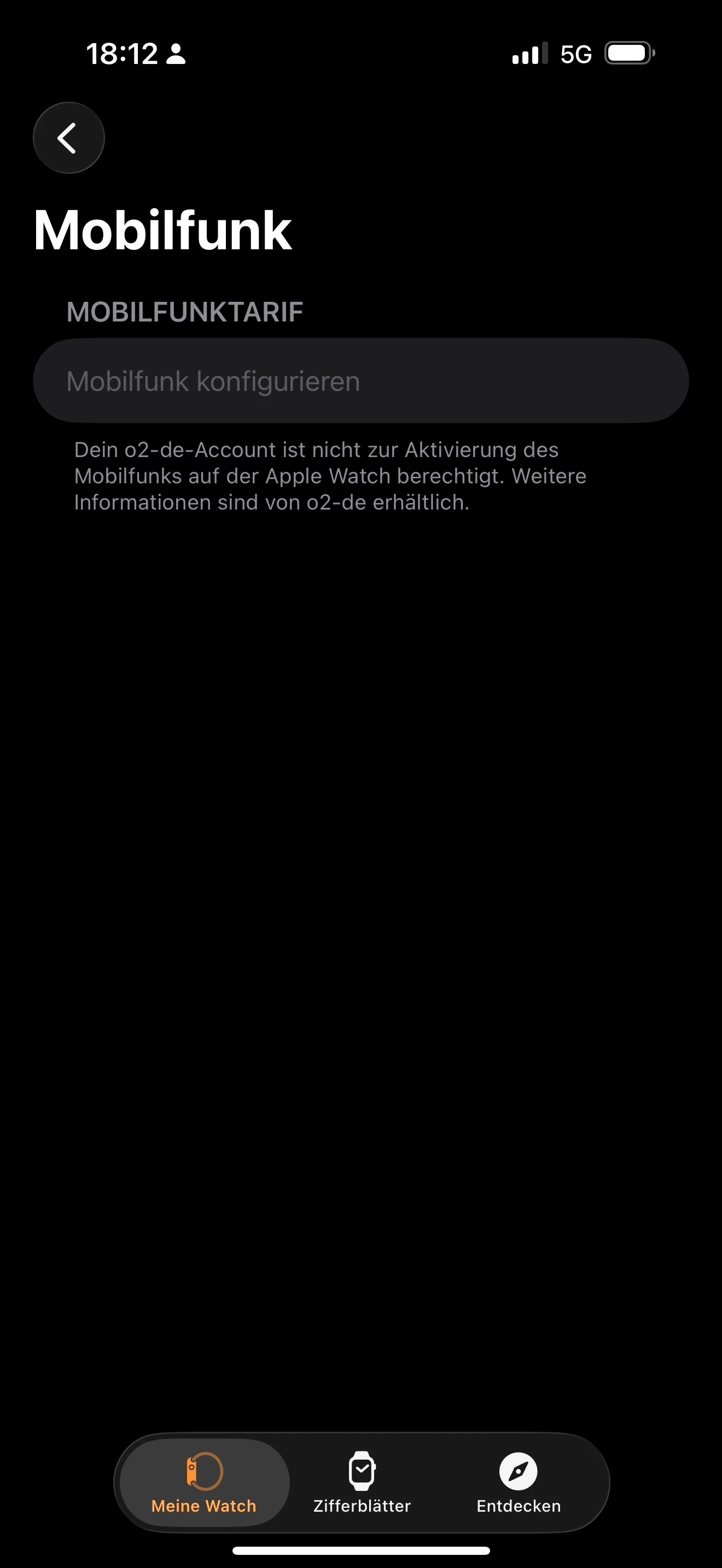 Ich hab das alles so gemacht wie letztes mal auch. Dann kam sofort dieser Fehler, ich kann in der Apple Watch App im Punkt Mobilfunk gar nichts machen.