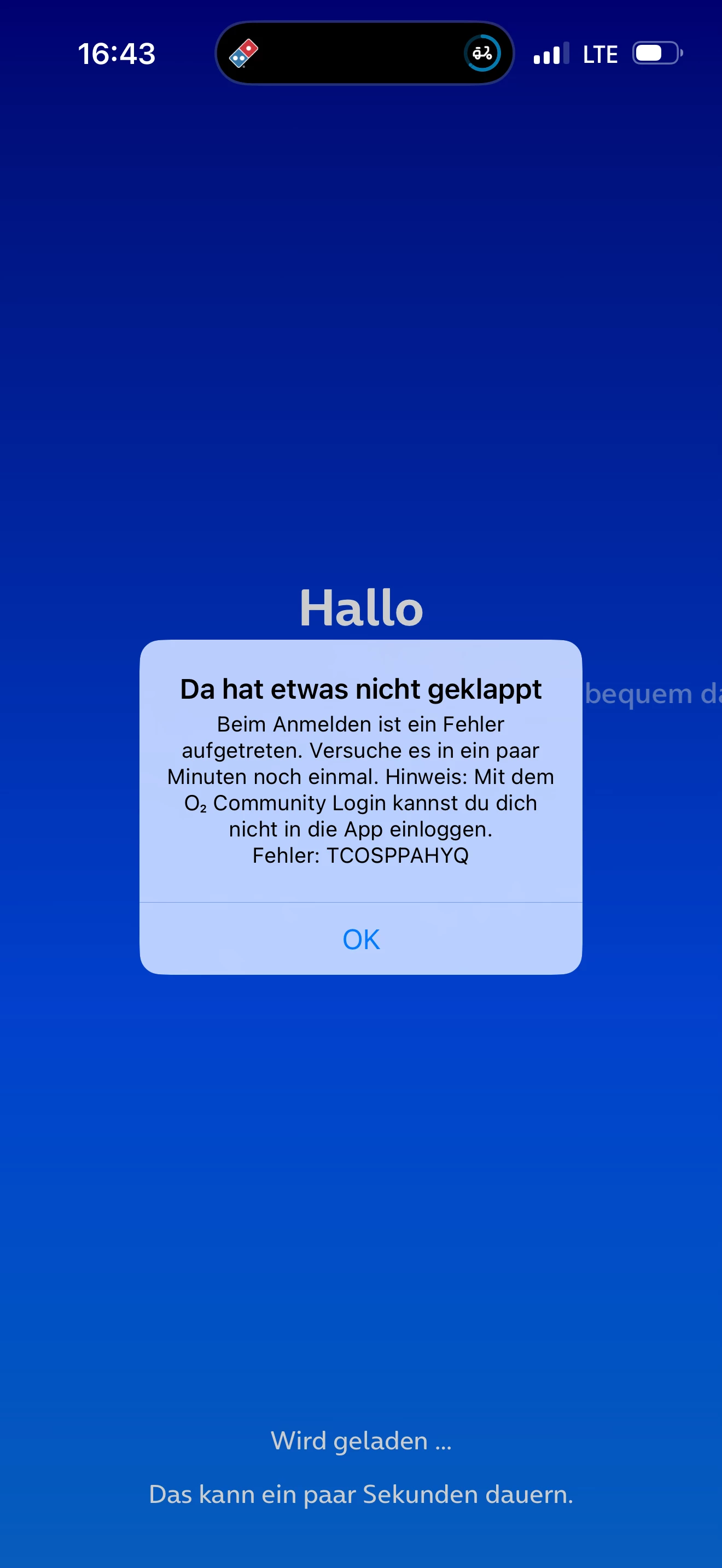 Aktuell ist keine Anmeldung in der o2 App möglich. Nutze solange das Kundenportal.