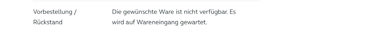 als Ergänzung, Vorbestellung bedeutet, dass weiter auf Wareneingang gewartet wird.