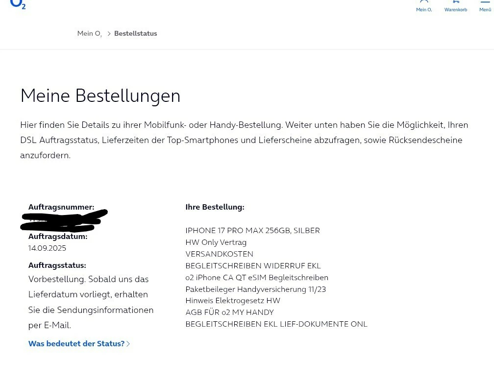 In meiner O2 App steht seit Tagen „wird bald versendet“