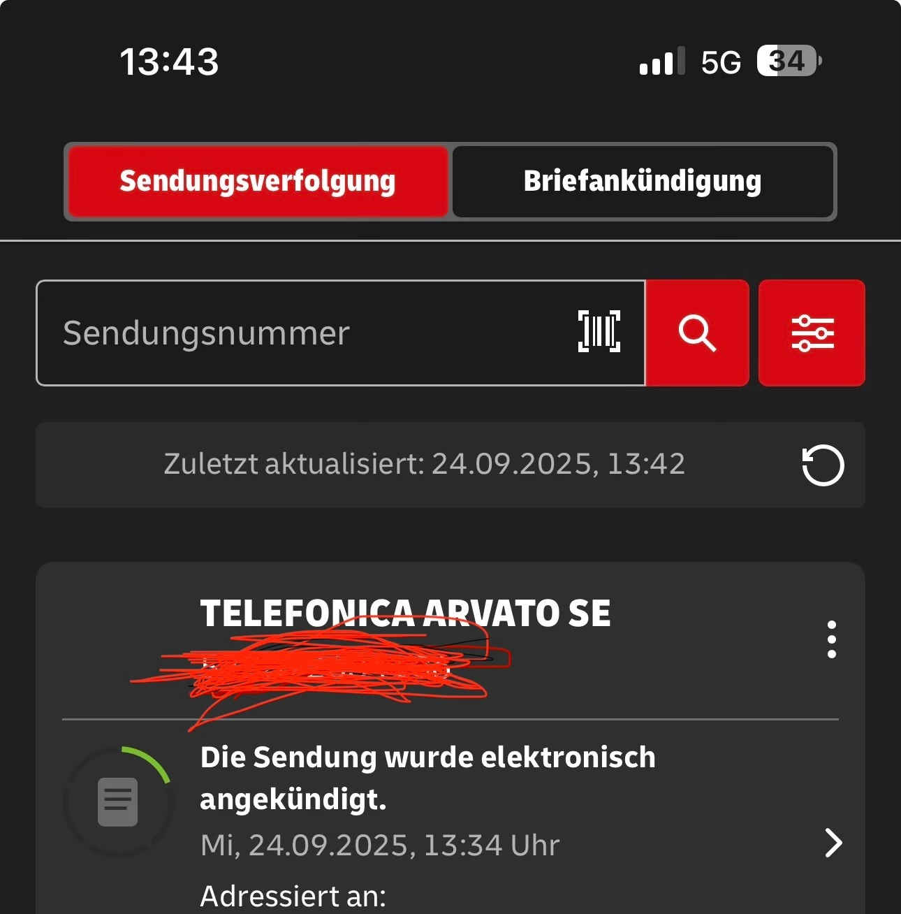 Aber die Sendungsnummer hast du ja :-) Interne Nummer auf dem Lieferschein
