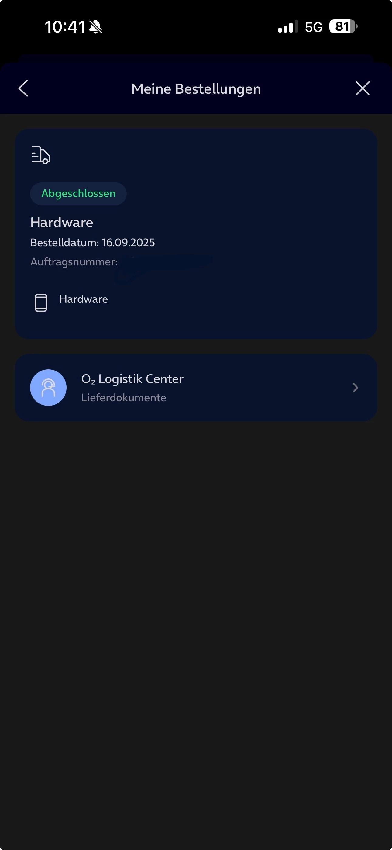 In der App steht nun allerdings Status abgeschlossen. Davor stand immer „wird bald Versand“. In den Logisitc Dokumenten findet er aber mit meiner Auftragsnummer nichts. Jetzt bin ich verwirrt, wie der Status nun ist ?