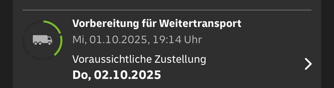 Wuhuuuu meins ist endlich im LC und sogar schon in Zustellung 🥰 aber leider kenne ich meinen Postboten und vermutlich gibt es wieder um 15Uhr „unerwartete Ereignisse“ 🫠😃
