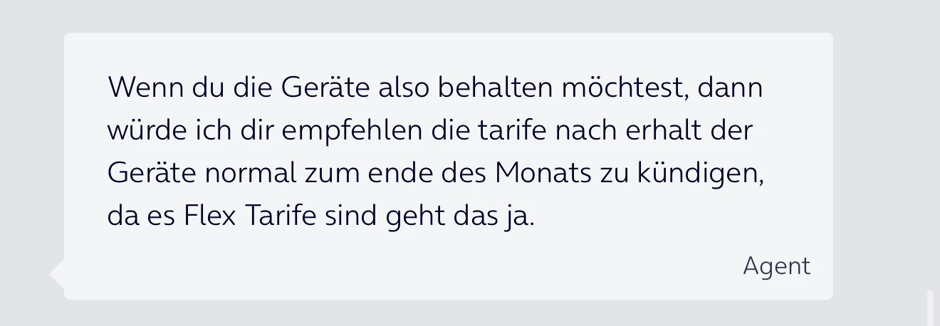 Auf meine Rückfrage aber sicher nur den Tarif stornieren, dann die Antwort was ich oben schon geschrieben habe 😊
