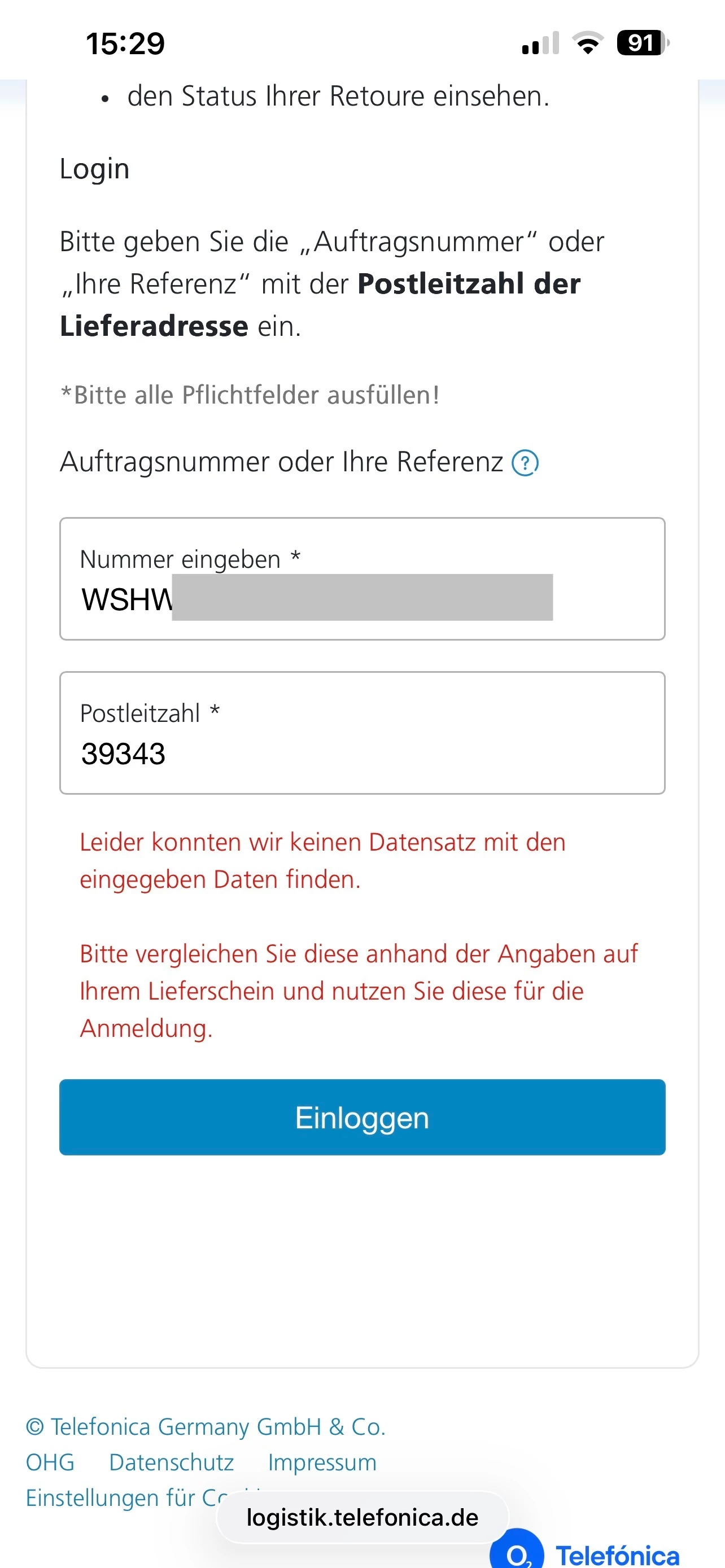 Wieso wird denn kein Datensatz gefunden ? Bzw. In der App steht versendet aber es existiert keine sendungsnummer ect ?