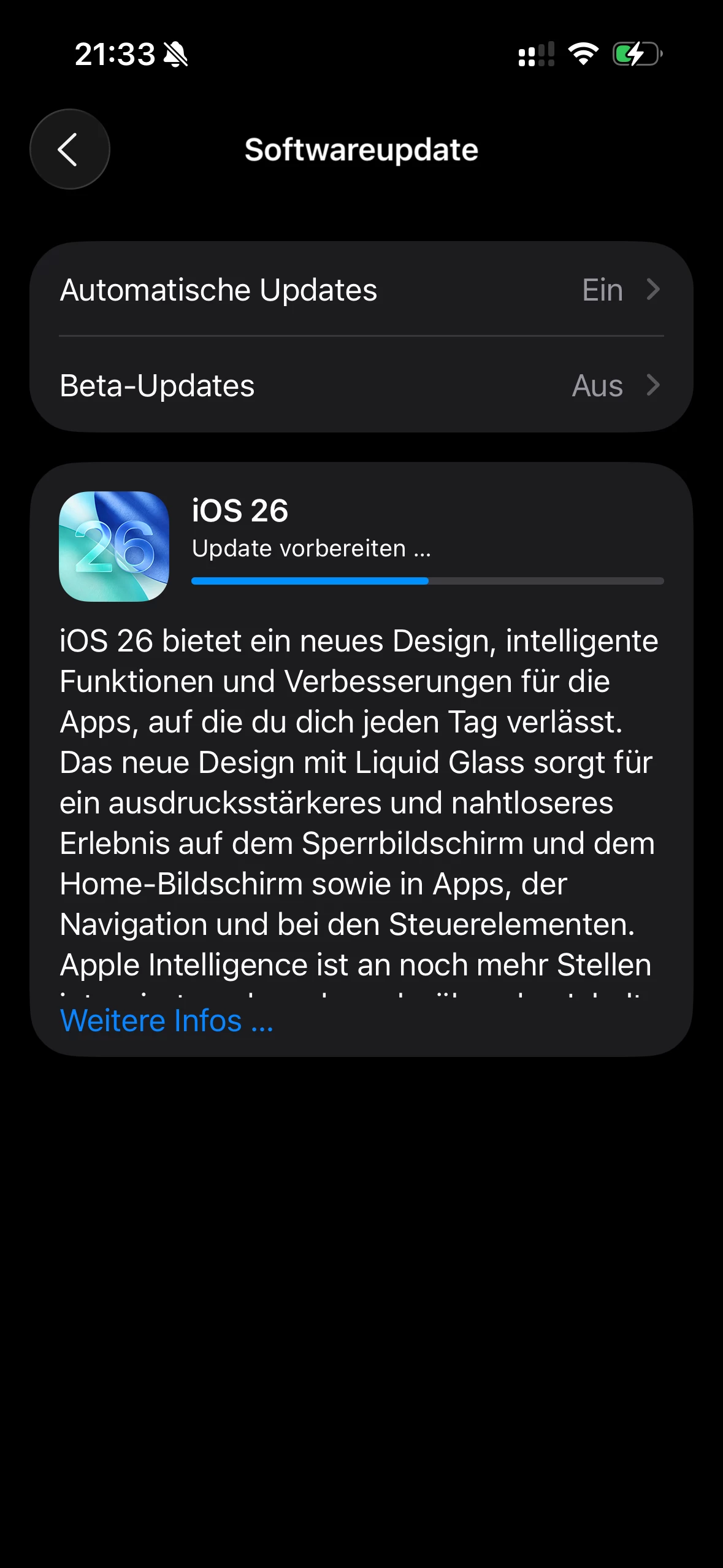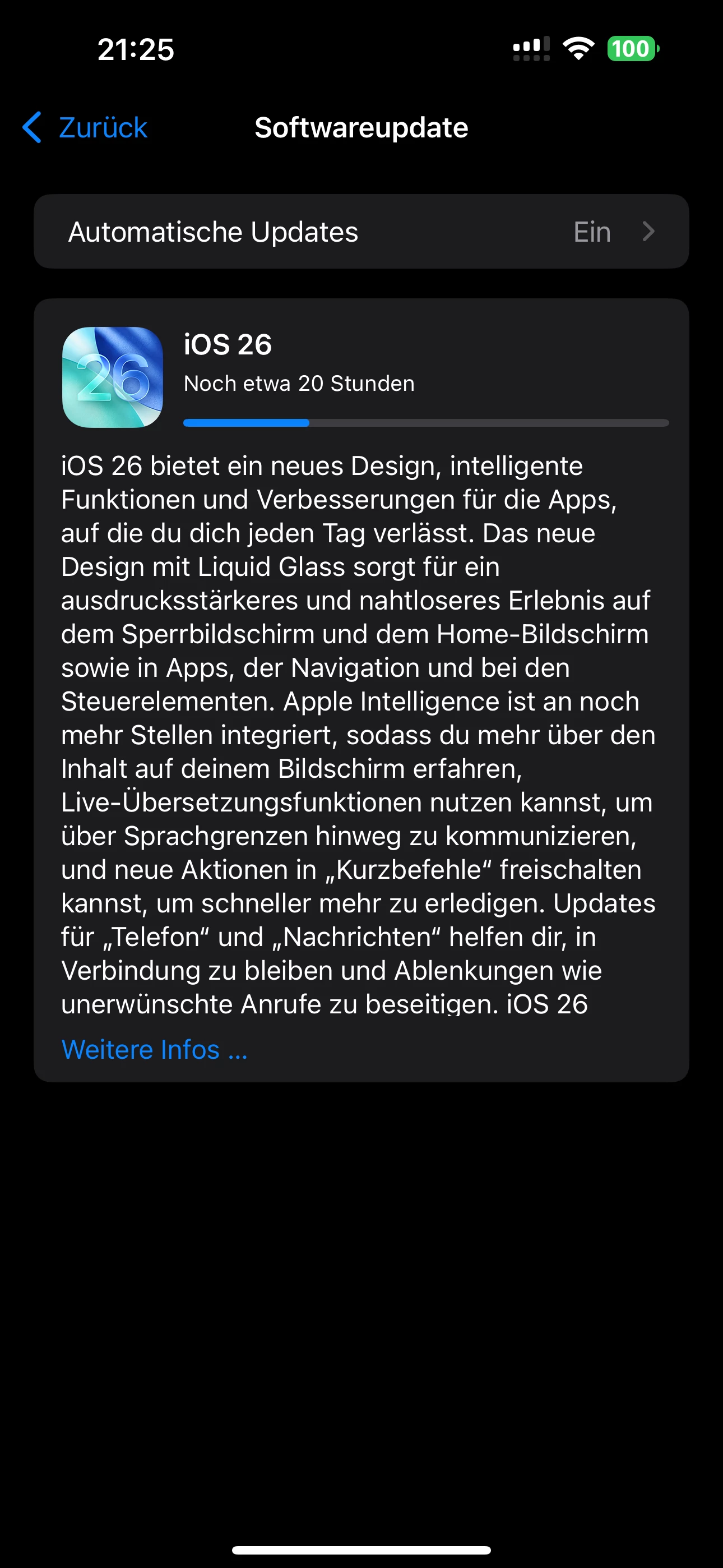 Ich lade auch grad iOS26, bin mal gespannt wie es ist. Habe bewusst bis jetzt gewartet.
