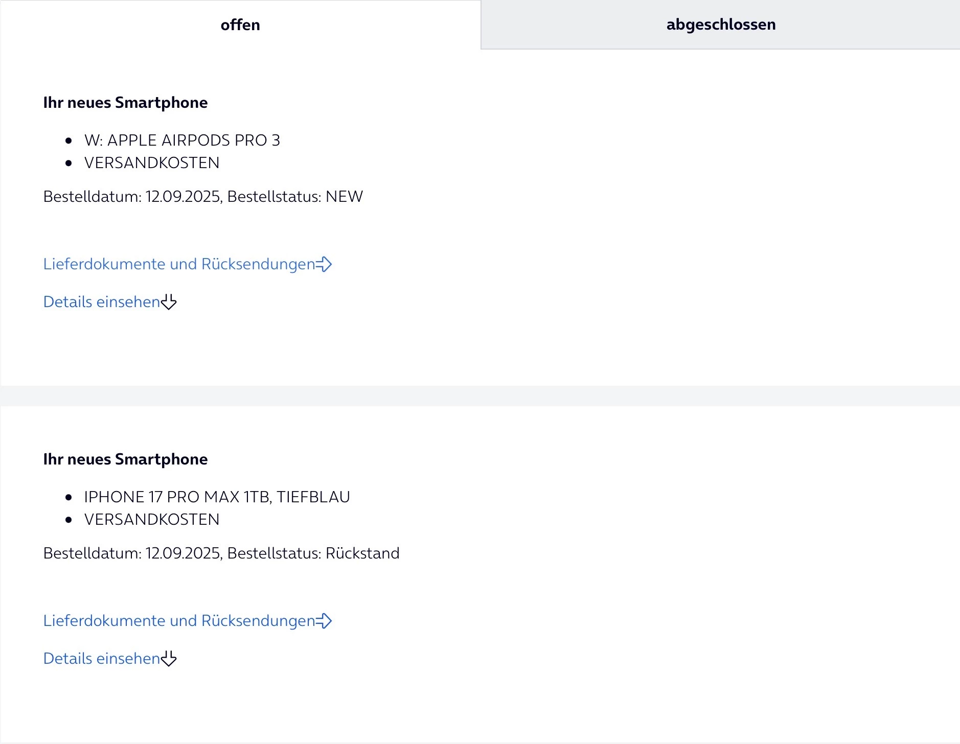 Aber bist jetzt ist das iPhone 17 Pro Max im Rückstand und bei dem AirPods Pro 3 steht Vorbestellung.