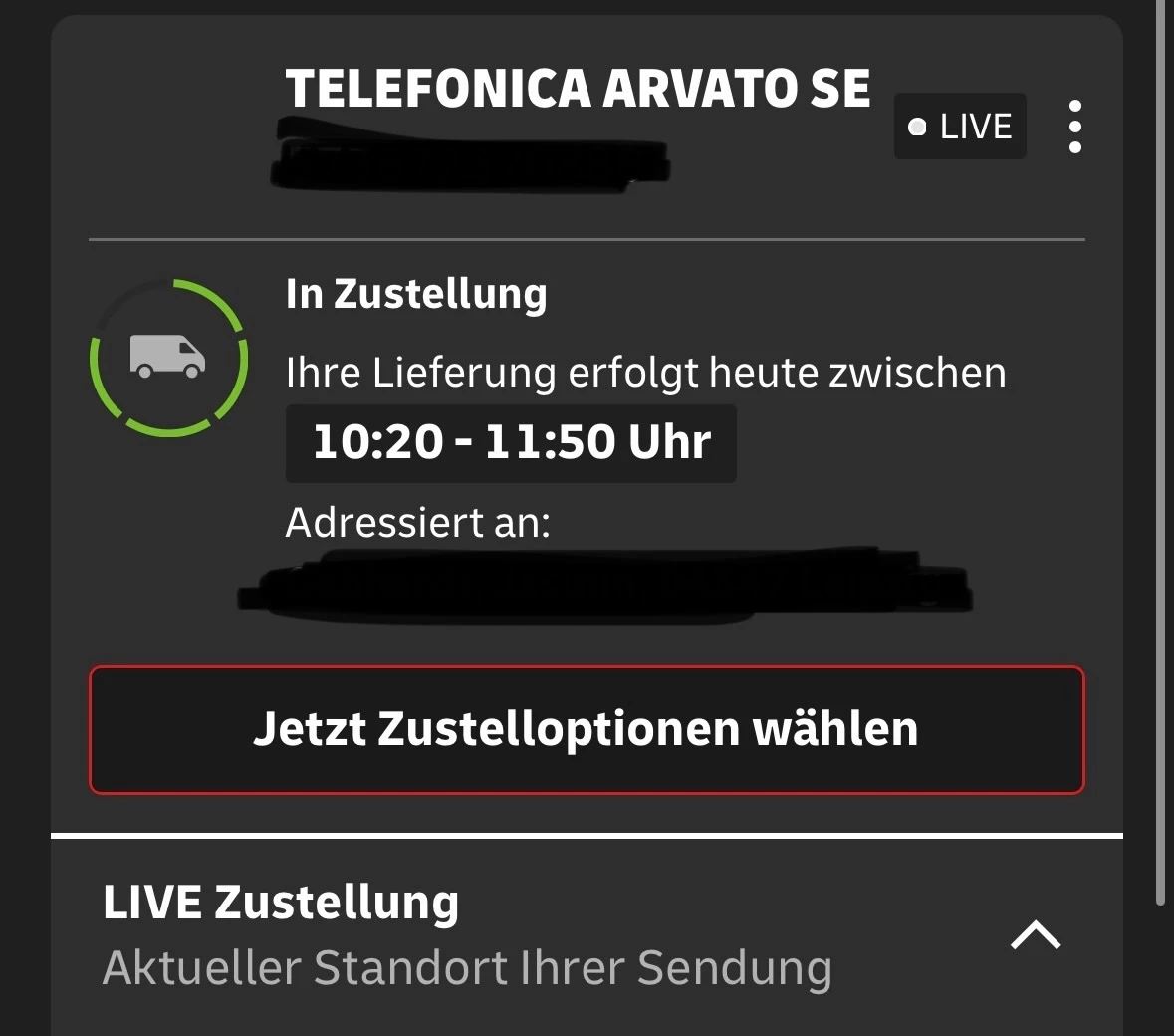 @CmYk Live-Tracking aktiviert sich erst bei 50 Stopps bei mir und wenn er in meinem Ort angelangt ist.