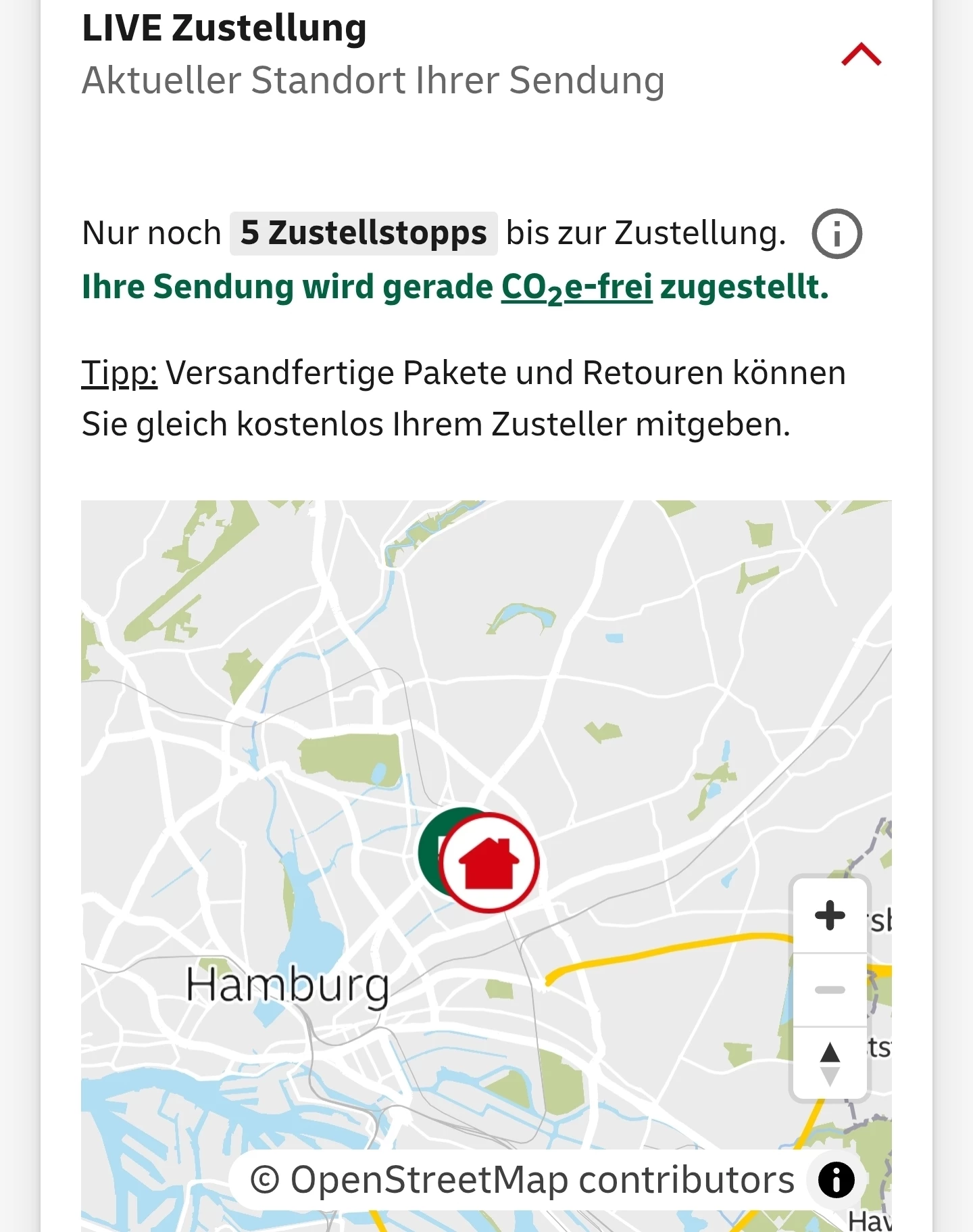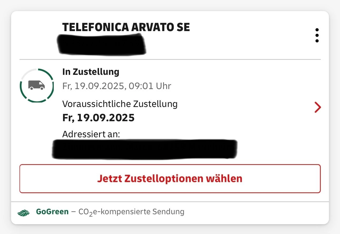 Ich kann das DHL Fahrzeug schon aus dem Fenster sehen, steht gerade nebenan im Krankenhaus und liefert dort aus. Noch 5 Stops :)