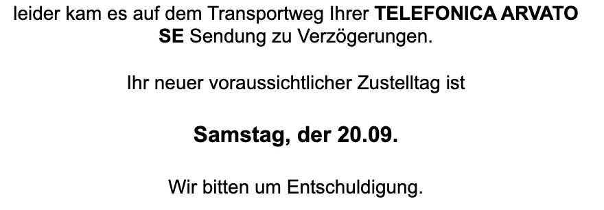 @Ayloo1909 mir wurde das auch gesagt, AB kam erst am Montag obwohl ich 2x an der Hotline nach der AB gefragt habe
