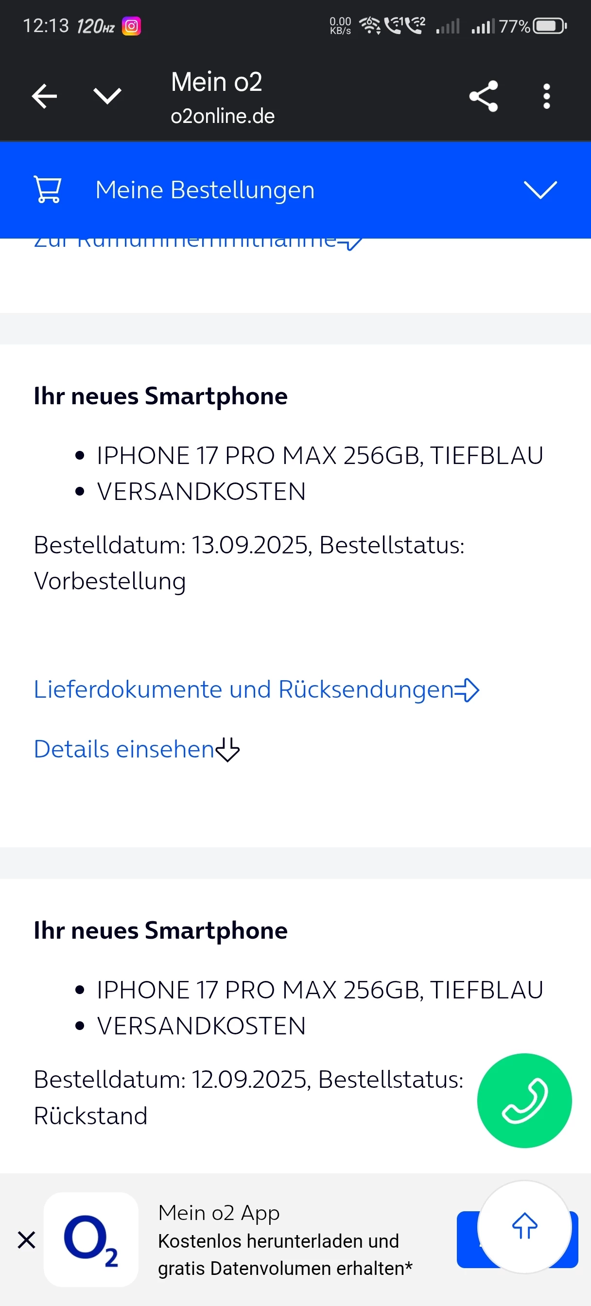 12.09.2025: iPhone 17 Pro Max – Status „Rückstand“. War aber vor zwei Tagen auch "Vorbestellung"
