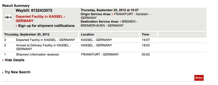 Also "Delivery Status" sagt das mein Paket unterwegs sei, aber von Kassel nach Bremerhafen? Ich wohn in der Nähe von Koblenz... da ist doch was faul...