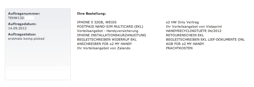 Wenn ich hier( http://www.o2online.de/goto/meine-bestellungen ) meine Auftragsnr. eingebe bekomm ich folgendes: