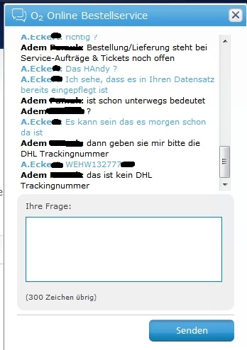 Auszug aus einem Chat mit einem o2-Mitarbeiter.