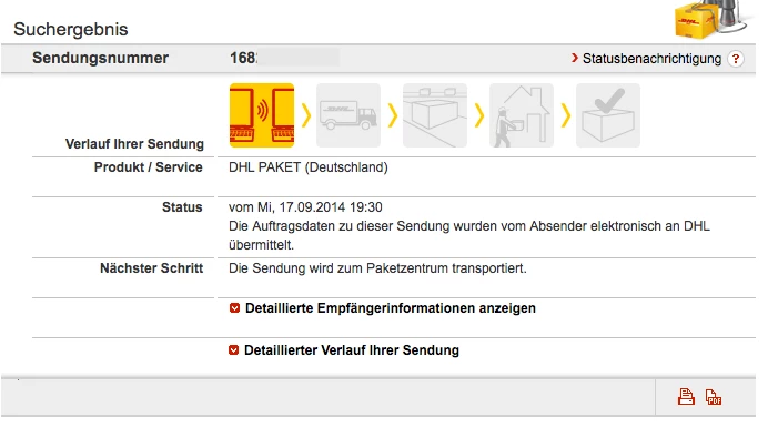 Eine E-Mail, dass mein Paket unterwegs ist, habe ich bisher nicht erhalten.