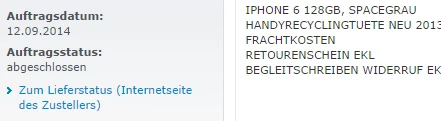 Bestellt am 12.09.2014 um 8:56