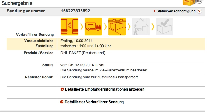 Grad Versand-Mail bekommen...  Laut DHL kommt es morgen 10-13 Uhr an ☺️