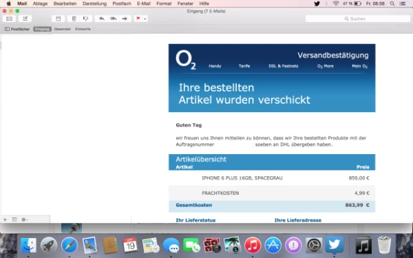 O2: Ihr Auftrag ist noch vorhanden und wird noch bearbeitet.