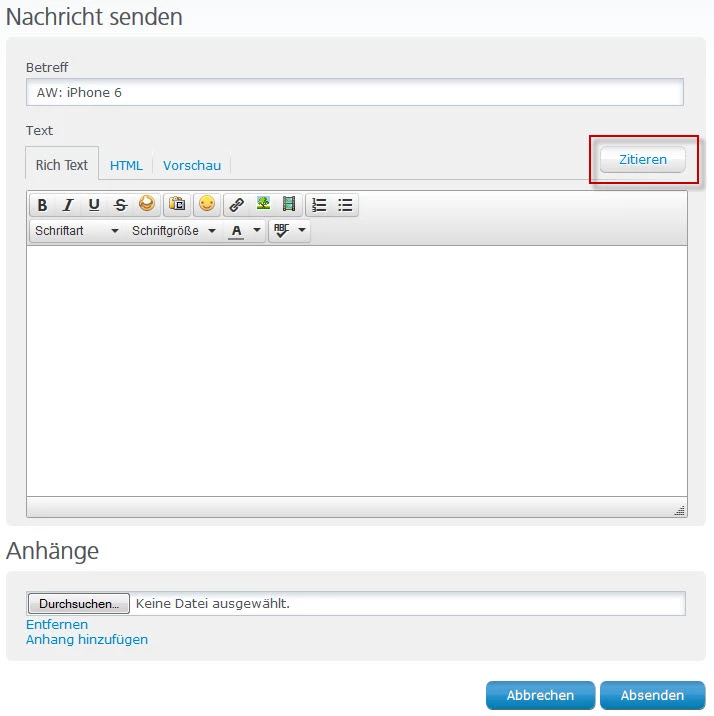Beim ipad in safari kein zitieren Knopf zu sehen... Bin ich blind 😉