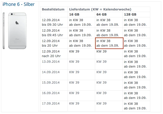 Anders lässt sich ja nicht erklären, warum die iP 6 Plus-Besteller mit angekündigter KW 40 es heute in KW38 in den Händen halten!