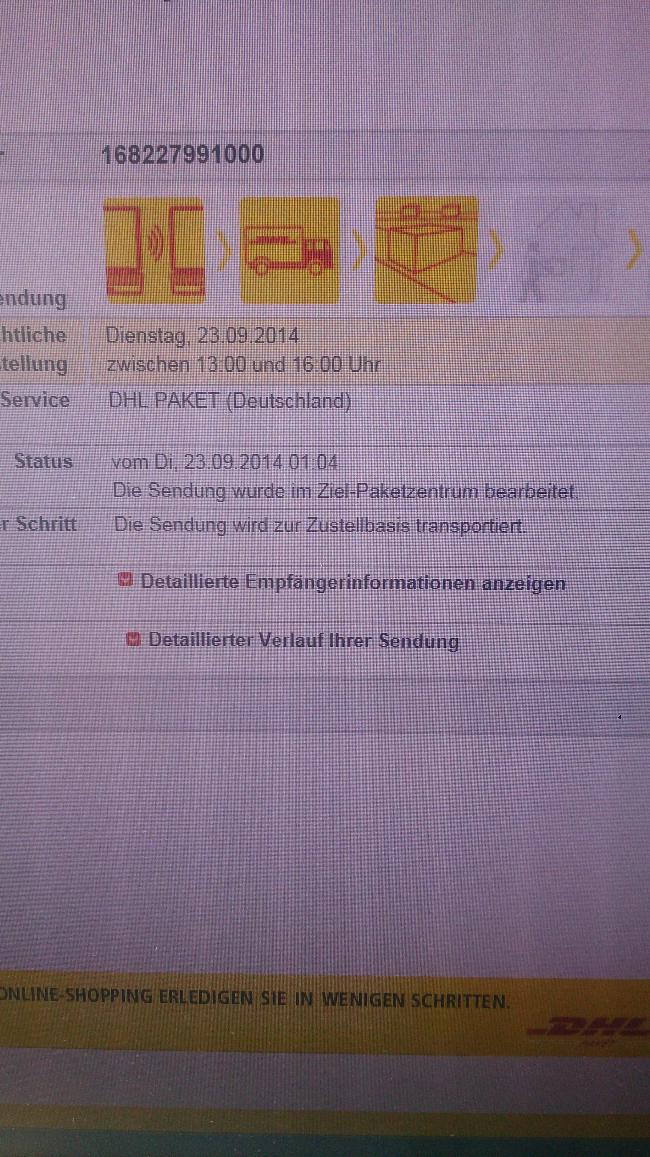 Gib doch die Paketnummer beim DHL Tracking ein 😉