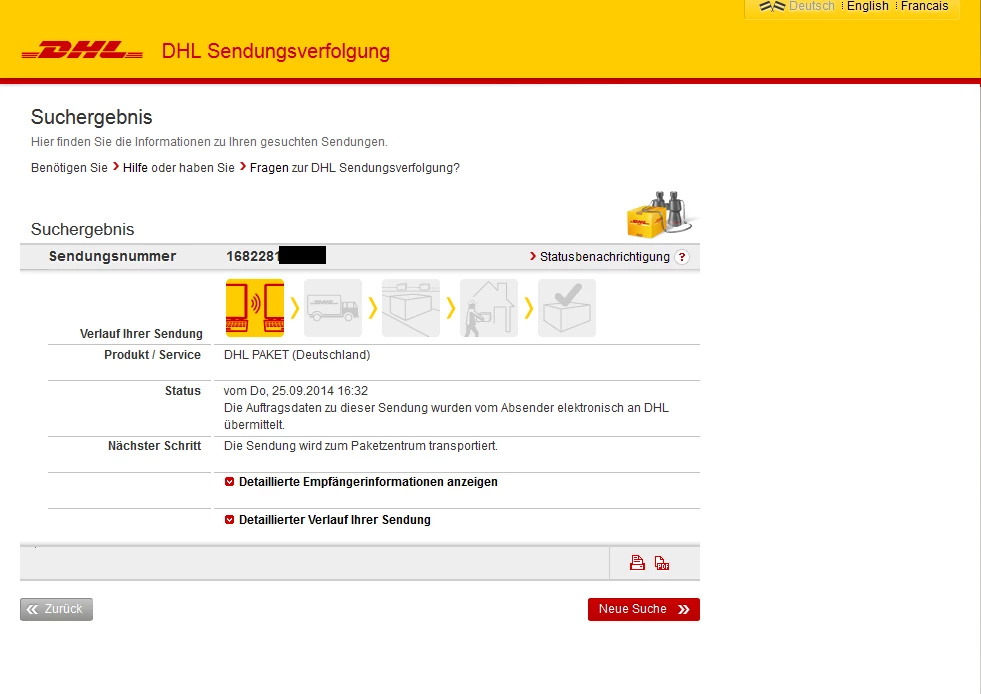 Nach den ich gestern ja ne ganz unfähige Mitarbeiterin von der dhl am Tele hatte. Die meinte ja ware fehlgeleitet worden wegen Postleitzahl und ich müsse noch 2-3 Tage länger warten Ansonnsten dann noch mal anrufen. Habe ich gestern Abend noch mal versucht rauszufinden was nun mit meinem Paket ist.