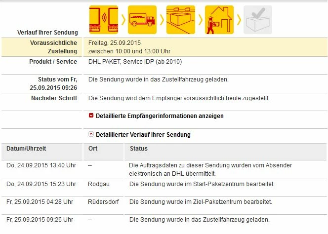 Also die voraussichtliche Zustellung soll heute sein.