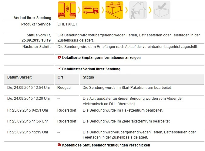 @RobocopKlaus‌, das müsste aber irgendwie raus zu bekommen sein. Oder pass dann morgen mal DHL ab und frag den Fahrer, in welche Filiale er die Pakete bringt, wenn er sie nicht los wird.