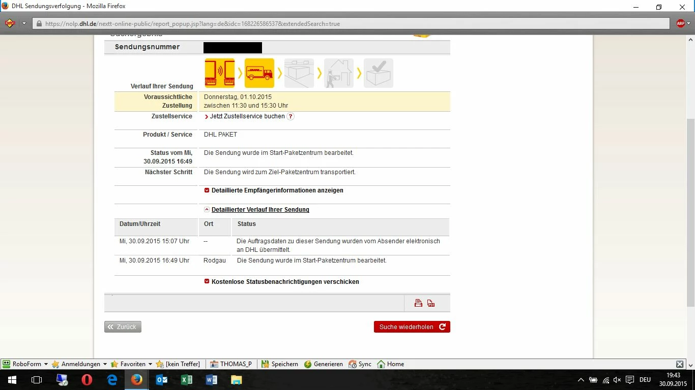 Theoretisch müssten wir die DHL Sendungsnummer in den nächsten Stunden erhalten, bin ich mal gespannt... automatisch zeigt die DHL App bei mir nichst an.