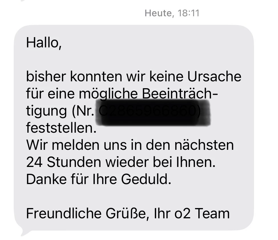Was ich daran ehrlich gesagt nicht nachvollziehen kann ist, dass ein großer Mobilfunkanbieter wie o2 offenbar über einen so langen Zeitraum keine klare Ursache benennt und keine konkrete Lösung oder Timeline kommuniziert. Das ist aus meiner Sicht schwer akzeptabel. Gerade bei einem grundlegenden Kommunikationsdienst wie Messaging erwarte ich deutlich mehr Transparenz und eine zügige Ursachenbehebung.