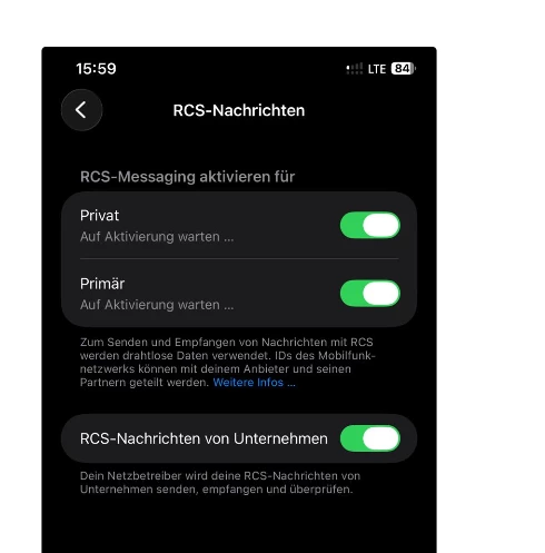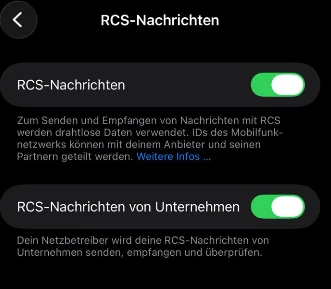 Ich persönlich nutze kein RCS und musste die Funktion im iPhone auch erst mal suchen.