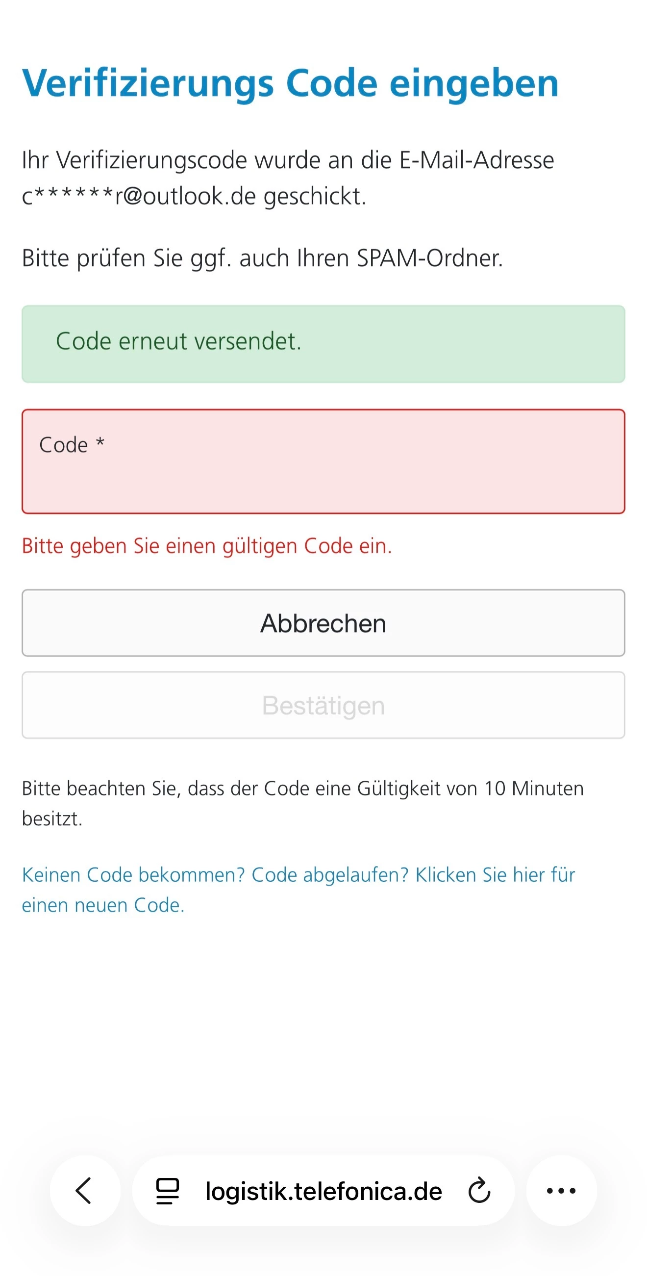 keinen Code bekommen?… etc klicke, steht drauf Code erneuert senden an die email Adresse oder an die alte Nummer.