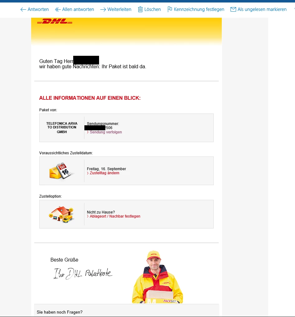 Bei mir in der DHL App wird mir eine noch unbekannte DHL Sendung angezeigt. Es wir denke ich.