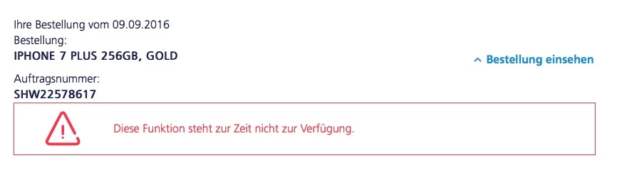 Ich habe am 9.9. um 9:18 Uhr über die Hotline bestellt.