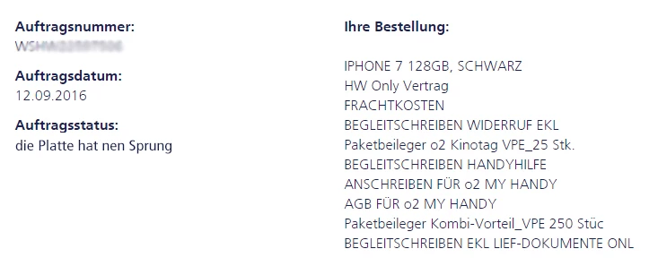 Die MyHandy Bestellung mit dem IPhone 7+ aber Bitte weiter laufen lassen!!