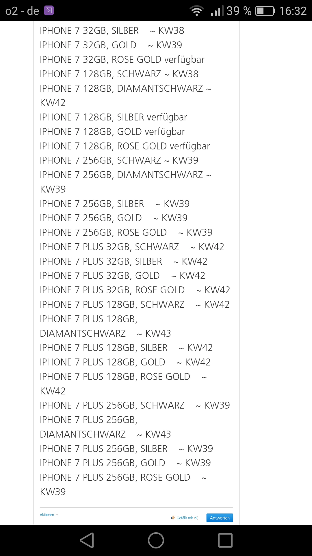 kannst du mir eine Antwort darauf geben wann das iPhone 7+ 32 gb schwarz ca geliefert wird wenn man am 9.9 bestellt hat ? Oder ob kw42 stimmt