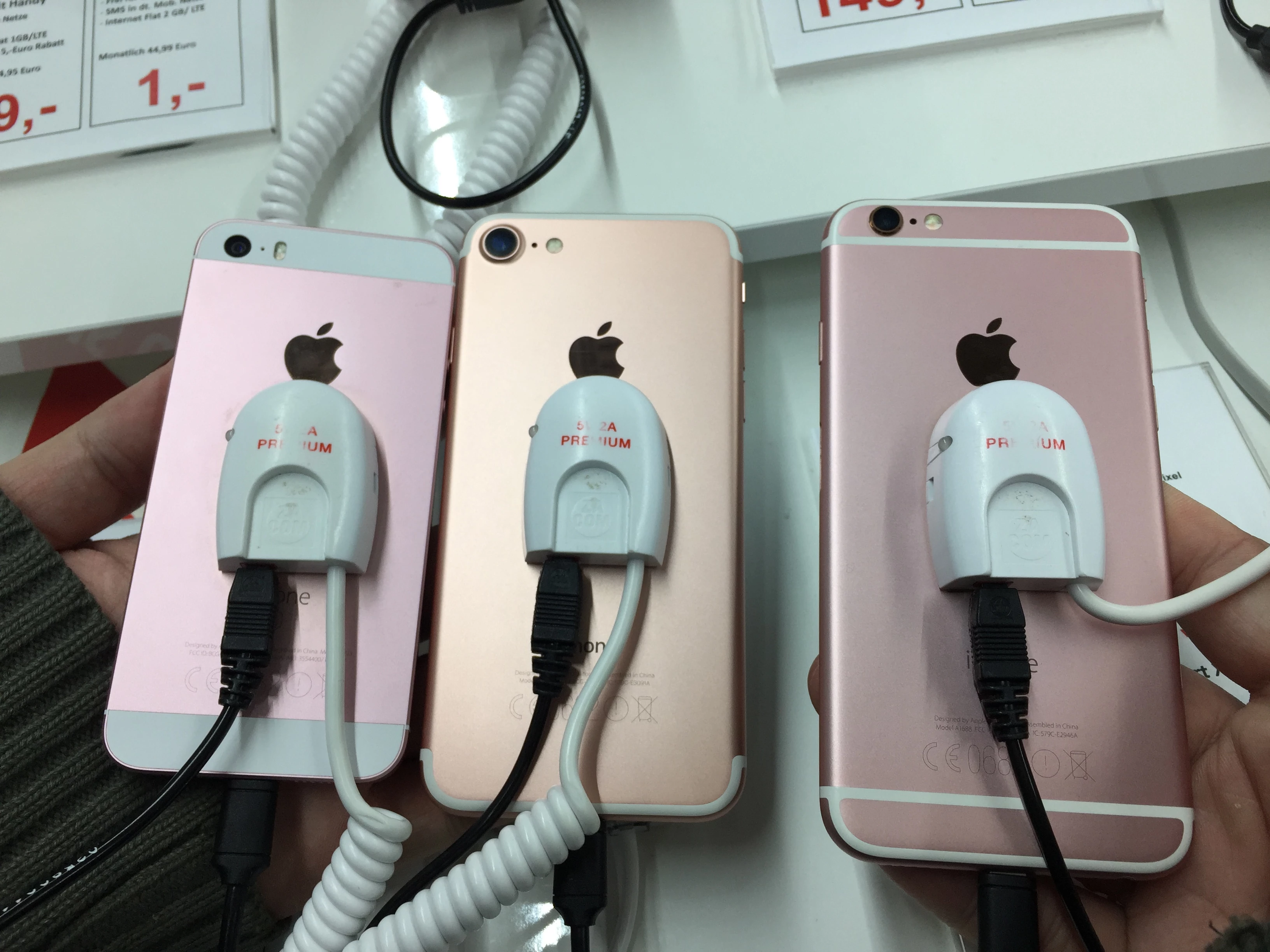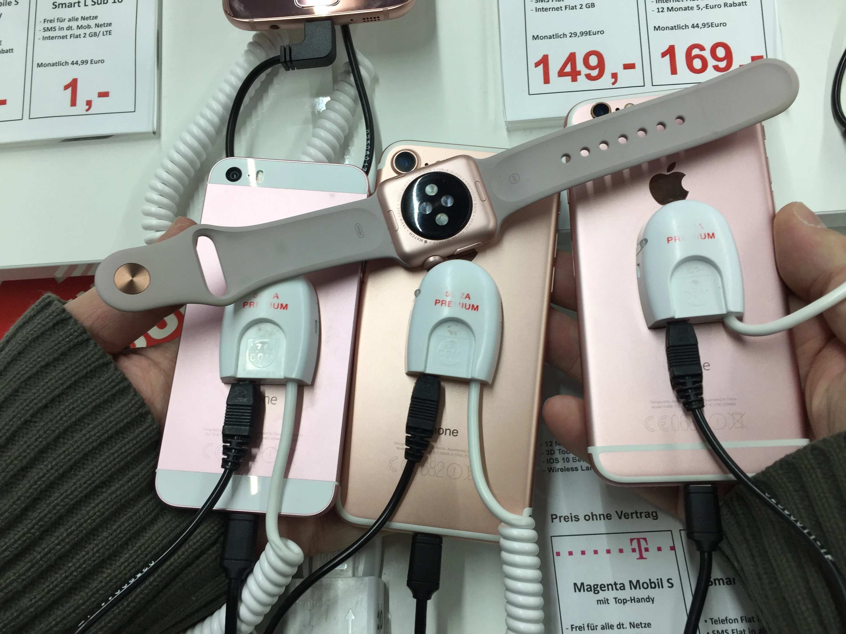 SE, iPhone 7, iPhone 6s alle in Rosegold und einmal mit Apple Watch Rosegold im Vergleich ☺️