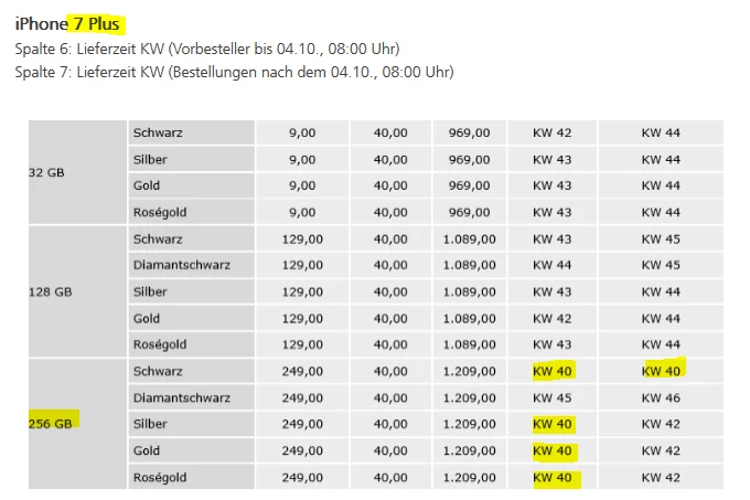 Das iPhone 7 Plus 256 GB steht noch auf KW 40. Kann ich davon ausgehen das es schneller zu haben ist?